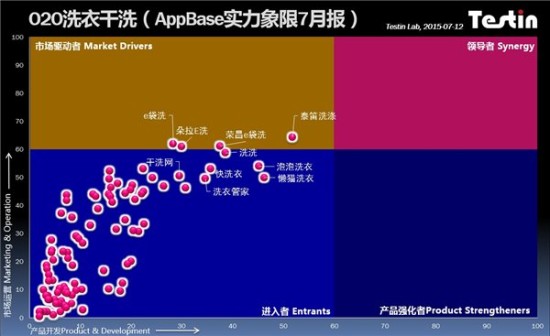 O2O洗衣干洗AppBase实力象限排行榜(2015.07.12)