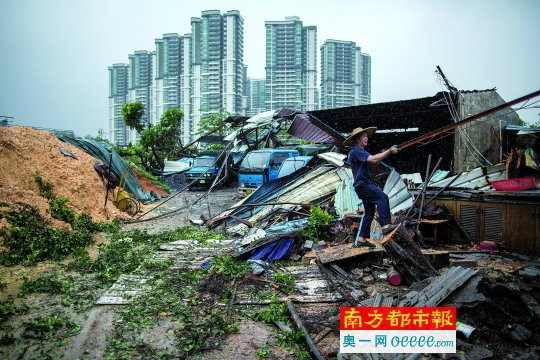 在南村镇和石碁镇交界处,是大片的空旷农田,偶尔出现的一两个铁皮搭建的厂房也成为龙卷风施虐最严重的场所。在市新公路边的南村村、珠江灯饰厂,记者看到,不少房屋的玻璃窗、铁皮厂房的顶棚也被吹走。约10间堆放在工地上的活动板房严重扭曲,钢板如揉成一团的纸皮垃圾散落在空地上,电线杆上、高压线上,挂着一些皱巴巴的铁皮、钢板,在风雨中互相敲打,发出“铛铛”的响声,现场多处拉起警戒线禁止无关人员进入。