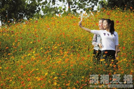 11月5日,长沙洋湖湿地公园,市民正在与秋色自拍。组图/潇湘晨报记者 华剑