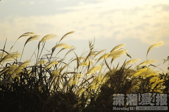 洋湖湿地公园,芦苇在风中摇曳。