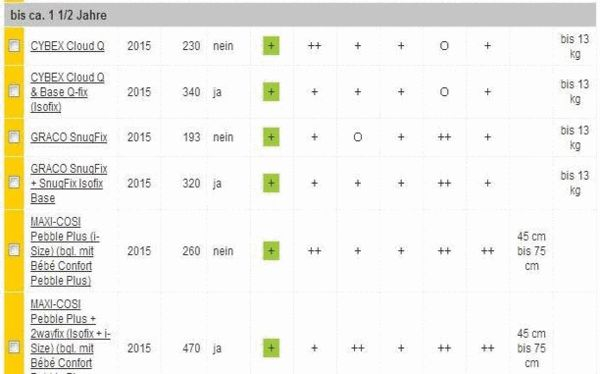 再来看在婴儿组1-1/2组别,这个组别的产品在国外比较流行,在国内基本没有,因为使用周期比较奇葩所以很少有用选,可以姑且看看,CYBEX、GRACO、MAXI-COSI等基本都通过了。