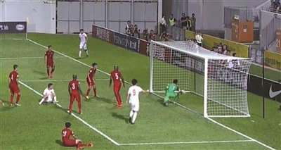 终场前国足打进一个明显进球,裁判却视而不见。
