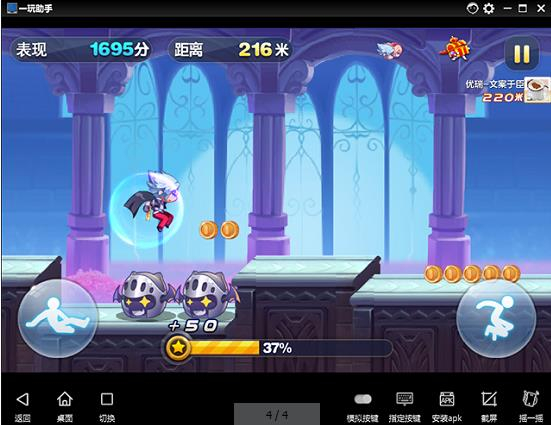 一玩助手,电脑玩游戏,畅快玩耍,前所未有!跑分7万性能远超手机;全面兼容99%的手机游戏;挂机方便,内存小,服务稳定;按键模拟,键盘操作方便简单;更有游戏礼包福利自动推送!大屏跑酷更刺激,一玩助手带你畅玩《天天酷跑》,高分走起!