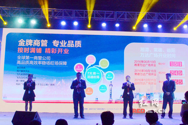 红网长沙1月13日讯(时刻新闻记者 唐频辉)昨天下午,记者从2016万达商业(湖南)招商大会上获悉,截至2015年底,万达商业已在全国开业135座万达广场,计划2016年开业54座万达广场,2座万达茂。2016年,万达商业将在湖南最具发展潜力的三座城市湘潭、常德、益阳新开三家集购物、美食、休闲、娱乐于一体最具品质的城市综合体万达广场,成为每一座城市的商业中心。其中,湘潭万达广场将于6月10日正式开业,常德万达广场将于9月16日正式开业,益阳万达广场将于12月31日正式开业。