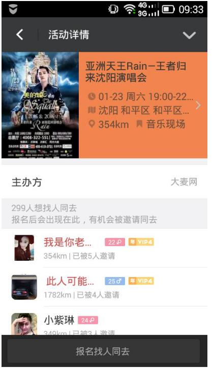 陌陌“附近活动”是一个基于地理位置的活动信息展示平台,分为音乐、电影、戏剧等多种类型。通过“附近活动”,用户可以根据地理位置查找并参加最新活动,也通过陌陌、微博邀请好友一同参加。用户还可以通过“附近的活动”的在线购票功能,购买电影、话剧、演唱会等演出门票。本稿件所含文字、图片和音视频资料,版权均属齐鲁晚报所有,任何媒体、网站或个人未经授权不得转载,违者将依法追究责任。