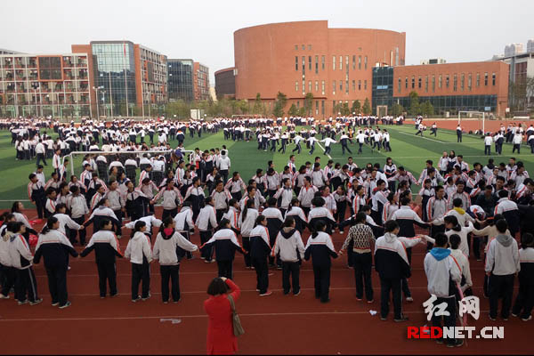 红网株洲3月11日讯(时刻新闻记者 王兴夏 通讯员 梁梁)今日下午4点,湖南省株洲市二中以“放飞心灵,快乐成长”为主题的大型户外拓展活动如火如荼举行。该校高二年级上千名学生在田径场上嗨翻天。