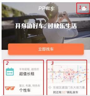 如何让租客更便捷的找到自己喜欢的车是PP租车最为关心的问题,立刻找车、个性车、超值长租、附近的车被放在了最显眼的位置。租户只需点击任何需求的车,可以随时查看。