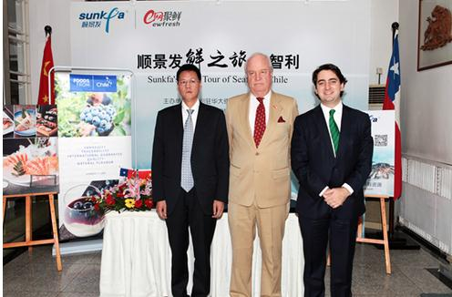 2016年4月7日下午,由智利驻华大使馆和顺景发集团共同举办的“鲜之旅”活动在智利驻华大使馆正式拉开了帷幕。出席会议的有智利驻华大使Jorge Heine(贺乔治)先生、智利驻华使馆商务参赞Andreas Pierotic(贝安之)先生、顺景发集团总裁翁绳生先生及受邀的行业嘉宾们, 此次活动,旨在加深顺景发集团与智利海产品贸易合作,借助双方的优势,互惠共赢,为中智海产友好合作起到积极推动的作用。