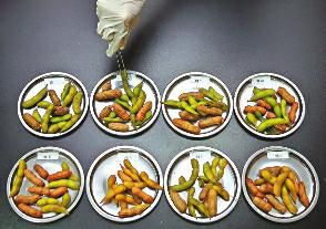 7月20日晚,华商报记者在西安城南、城西、城北8处烧烤摊点均购买了花生、毛豆,并在冰箱里进行了冷藏。昨日下午,西安营养学会的实验人员将这些花生、毛豆样本分开进行检测。