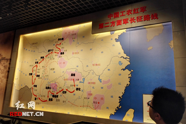 贺龙纪念馆展示中国工农红军第二方面军长征路线。
