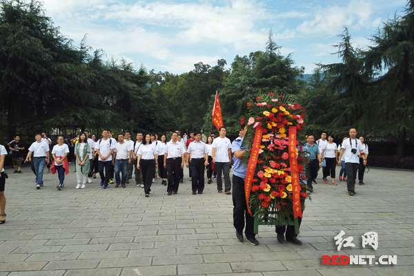 红网桑植9月1日讯(时刻新闻记者 肖懿 实习生 卢欣)今天,参加“长征路上奔小康”网络媒体“走转改”大型主题采访湖南站活动的编辑记者来到贺龙元帅故里桑植县洪家关白族乡,参观贺龙纪念馆及其故居,并向贺龙元帅铜像敬献花篮。