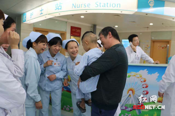 “刚才走了三圈,吃东西也好多了。”周末,乐乐妈高女士抽空来到医院,虽然离上次见面不到一个星期,但她发现乐乐身体状况已经明显好转,一家人终于放下了心头的巨石,大家都乐得合不拢嘴。