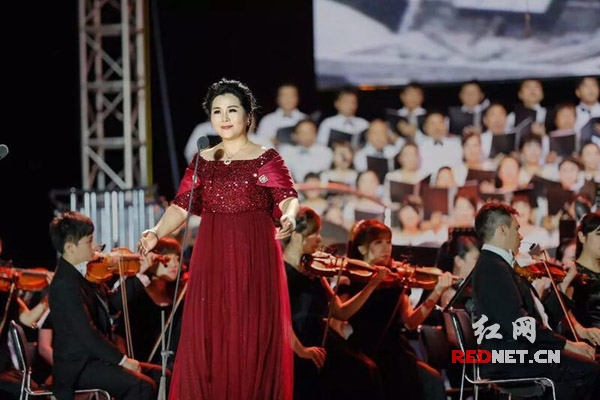 湖南省歌舞剧院合唱团团长、国家一级演员包燕飞演出现场。