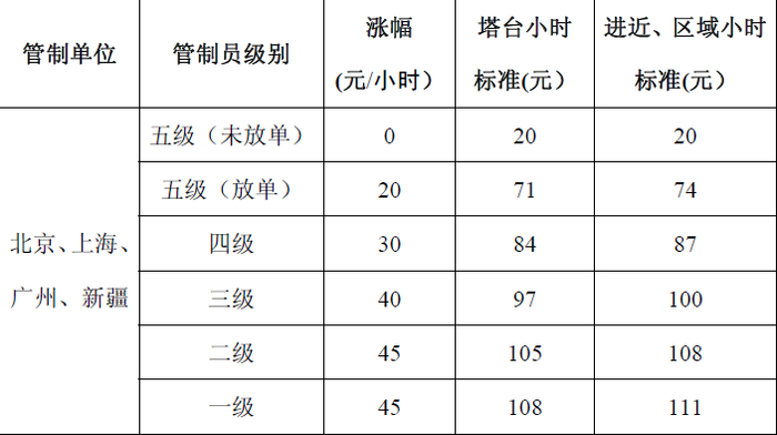 2017年1月1日起,华北、华东、中南空管局本部、新疆空管局(包括阿克苏空管站)管制员管制津贴标准调整如下: