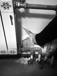 该业主称,自己是2008年买的这套房子,2011年搬进来后,第一个采暖季就发现墙皮脱落问题,“当时我还以为是暖气管漏水,但在屋里检查了半天也找不到漏水点,跟物业反映后也没有解决。”该业主还称,不知是否因为墙面和地面受潮,家里只有从天花板走的电线有电,从墙面或者地面走的电路都没有电,“这房子实在没办法住,现在只能空置在这里。”