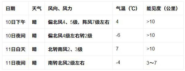预计10日至11日,北京地区天气晴,大部分时间能见度较好;受冷空气影响,10日白天到前半夜,风力较大;白天最高气温4~7℃,夜间最低气温-6~-4℃。