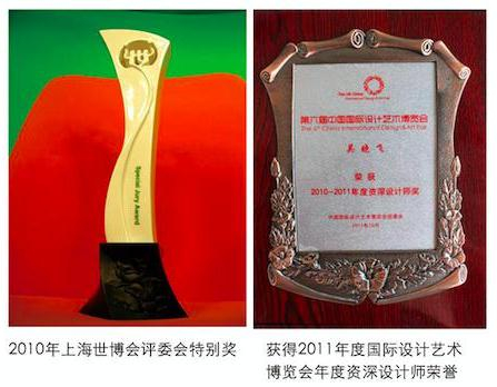 图为:吴晓飞在第六届中国国际设博会中获得荣誉称号