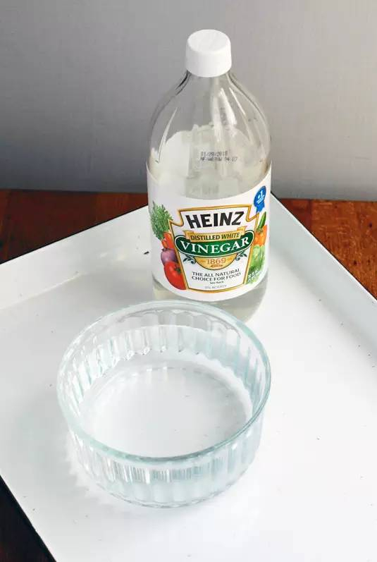 把醋倒入碗中,再放进冰箱,简单便捷,除臭效果一级棒!