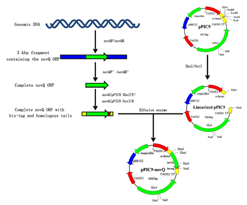 课题组通过功能基因组学数据挖掘,在筛选的几十种放线菌来源的维生素K2合成关键基因基础上,以雪色链霉菌(S.niveus)异戊烯基转移酶基因novQ为目的基因,构建重组载体pPIC9-novQ,经过拼接组装和优化,将目的基因成功转化到底盘生物毕赤酵母,再经组氨酸营养缺陷、菌落PCR、dot-blot蛋白点杂交等定向和精确筛选,获得NovQ高产细胞株。研究发现,NovQ在酸性和弱碱性环境中催化活性较高,Mg2+、聚氧乙烯油醚POE-20能有效促进NovQ发挥作用,而Cu2+、SDS强烈抑制酶的活性。在对表达的酶蛋白结构和功能研究基础上,为了提升细胞生长能力和产物合成能力,建立了全细胞催化技术体系,维生素K2合成能力达到189mg/L。