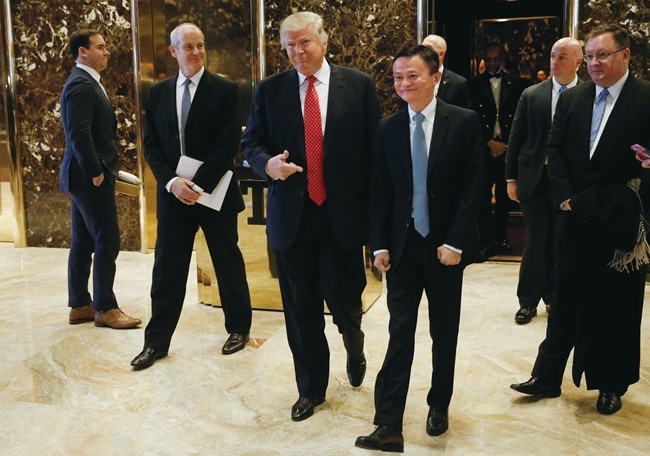 2017年1月9日,美国纽约,马云在特朗普大厦与美国侯任总统特朗普会面。