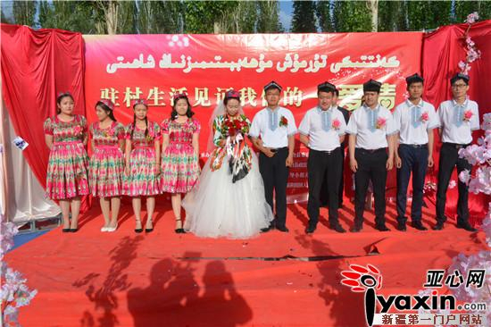 亚心网讯(通讯员 张慧勇)欢快的那格拉鼓、悦耳的唢呐、极具维吾尔族特色的马车……5月20日,新疆轮台县阳霞镇塔拉布拉克村一场极具特色的“访惠聚”驻村婚礼在村委会举行,各族干部群众200余人一同见证一对新人的民族婚礼。
