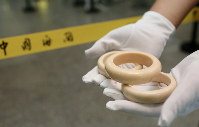 5月24日,拱北海关隶属九洲海关从两名从尼日利亚返回珠海的中国籍旅客行李中查获三个米黄色手镯,质地疑似象牙。5月31日,经华南野生动物物种鉴定中心鉴定,这三只手镯为现代象象牙制品。