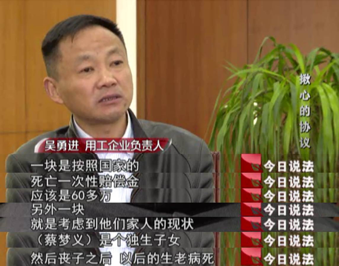 在法庭调查之后,主审法官还有一项重要的工作,就是找到蔡梦义生前就职的那家企业,询问这110万元的补偿款是怎么分配的。