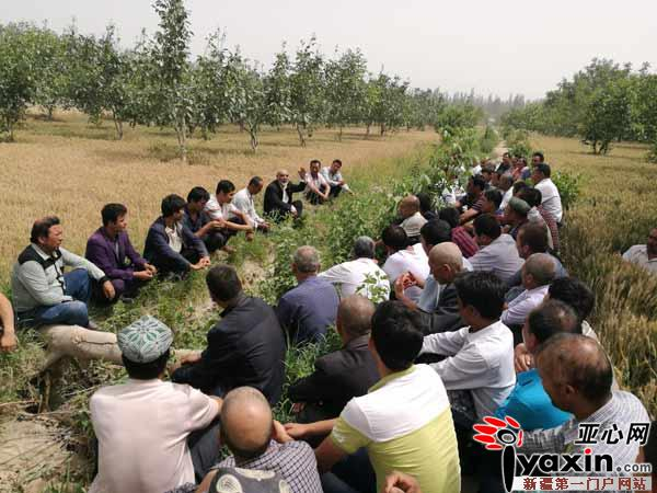 亚森·卡斯木在田间地头为村民宣讲党的好政策