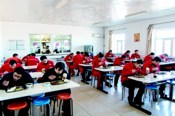 在中、蒙餐食堂内,公司为员工合理搭配饮食。
