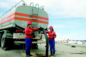 蒙古籍员工正在卸油。