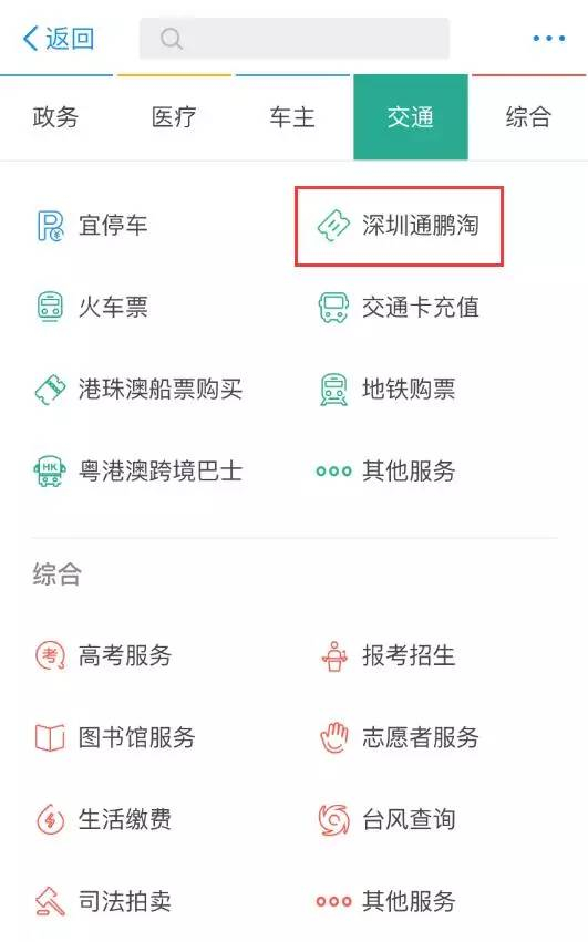 3、进入支付宝“城市服务”使用“深圳通鹏淘”等 。