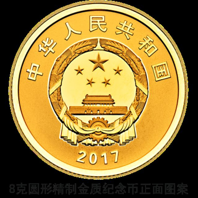 金质纪念币和银质纪念币正面图案均为中华人民共和国国徽,并刊国名、年号。