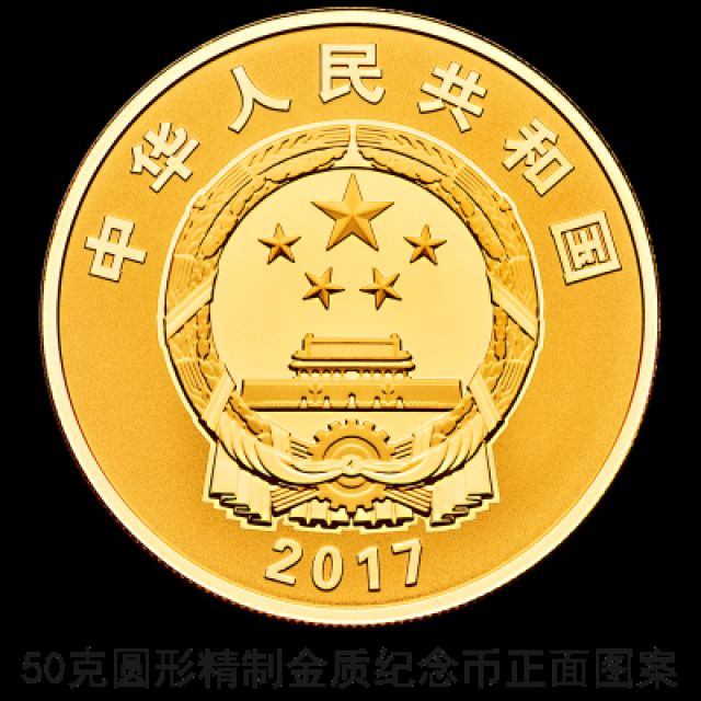 1.50克圆形金质纪念币为精制币,含纯金50克,直径40毫米,面额800元,成色99.9%,最大发行量2000枚。