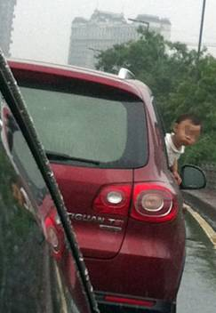 网友亲爱的Mr_周发照片,一个孩子将上半身探出车窗