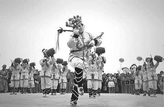 德平“鞅歌”与其他地方的秧歌相比既有共性,也有鲜明的地方特色,是鼓乐、歌舞、杂技三者结合的典型,而且每个村各有专长,可谓“术业有专攻”,德平一带就流传有“丁家村的鼓子、王连州的伞,赫(hei)家的秧歌扭得欢”的说法。