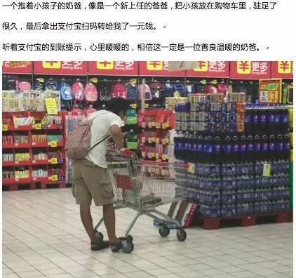 ——沈阳农业大学的王晨,曾在北京某大型超市入口苦于没有硬币而无法使用购物车。为了“在哪里跌倒就在哪里站起来”,她把零钱箱摆到了超市入口。听说是个公益活动,保安善意帮忙看着,还提醒顾客需要硬币的人留意这个零钱箱。很快,王晨就收到了一个奶爸的零钱转账。