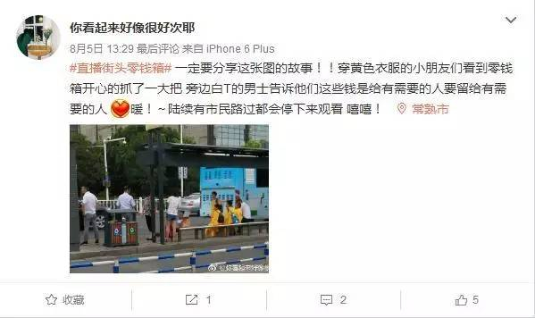 ——安徽合肥的汪博同学,怀着忐忑的心情,把零钱箱放在车站附近。路过的人来来往往,却没有一个人上去拿钱。更多的人选择驻足观看,用手机拍照。大概摆放了30多分钟后,有两位50岁左右的拾荒大妈,吃力地拖着两个大蛇皮袋走来。“我还以为拾荒大妈会拿一些零钱走,没有想到两位大妈只是看了看,对周围的人说了句奉献爱心的,咱们社会还是好人多啊。”然后又低下头,在垃圾箱里摸了摸,拿出了几个矿泉水瓶,放进一旁的袋子里。然后就在一旁等公交车。在我看来,对她们来说,凭自己双手劳动所得,才是最光荣的,奉献才是最可爱的。”