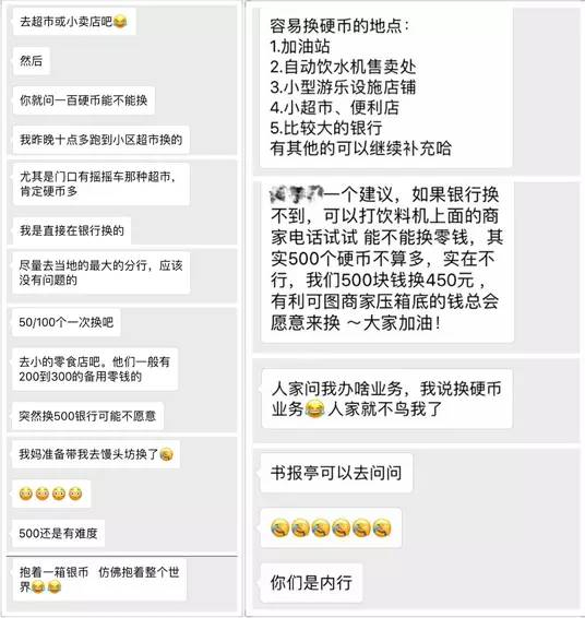 各地纷纷传来银行换不到硬币的“噩耗”,有些同学则把目标瞄准了小店铺……来自南昌工程学院的乐小英,跑遍了超市、游戏厅、早餐店、便利店,最终在妈妈的助攻下,成功在家附近的小商品商店把硬币凑齐。