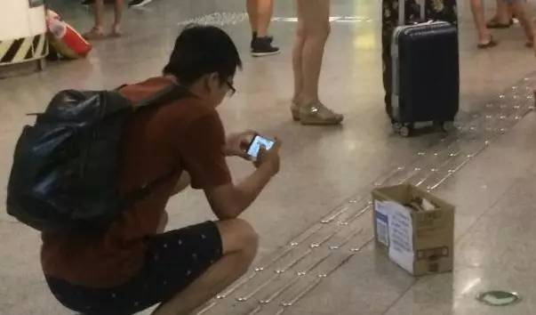 ——在重庆北站地下广场里,一位看似流浪人员模样的人仔细看了零钱箱上的字,注视良久后拿了钱准备离开,此时同样在一旁观察了很久的几位“棒棒”(是指重庆地区用一根扁担帮行人挑运行李的人)提醒他,然后这位流浪人员模样的人又将硬币放了回去。这天下午,这几位“棒棒”多次上前观看,但始终没有拿钱。