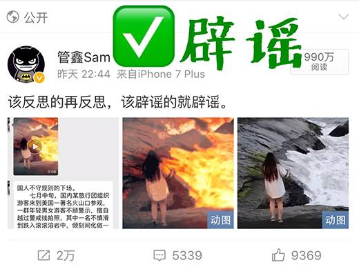 然而,很快就有人指出这是谣言。微博博主@管鑫Sam po出原图以正视听。