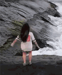 这是谣言!其实,这是最近一则女生脚下湿滑,不慎滑落海边的视频,被后期P图恶意造谣传播。