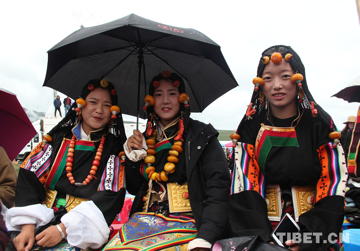藏族农牧民喜爱在节日或聚会时身着传统服装。服饰特点为华丽、鲜艳、隆重。特别是女性会佩戴有蜜蜡、天珠、珊瑚、松石等饰品。