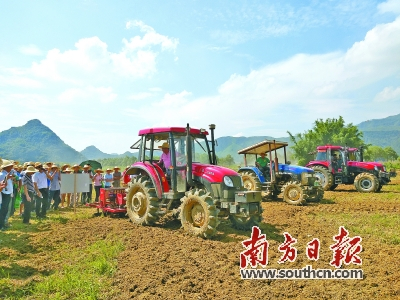 南方日报讯 (记者/焦莹 通讯员/胡建国 张涓涓)记者从近日召开的英德市农业社会化代耕服务现场会获悉,自2016年起,该市积极筹备整合农机装备资源,按照英东片、英中南片、英中北片、英西南片和英西北片等区域性布局,扶强扶大5家“公司+基地+合作社(农户)”型合作社,力争到2018年底,5家区域性合作社全部达到省级以上合作社标准,全面提升英德市农业机械化生产水平,加快英德农业现代化发展进程。