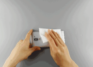 然后把纸巾贴在手机背面5秒钟