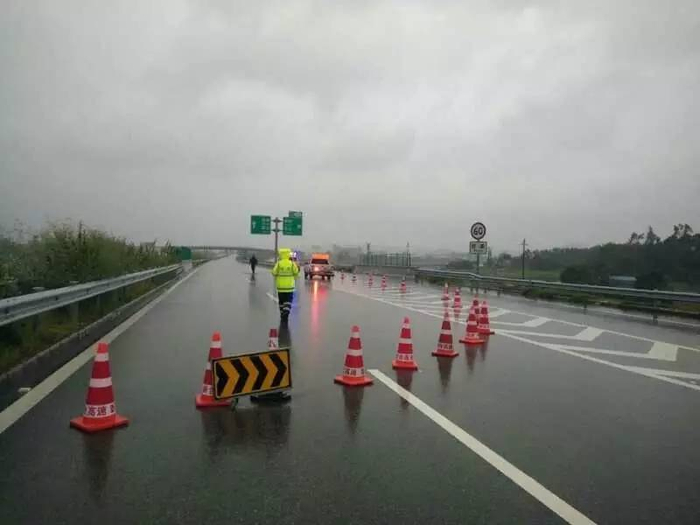 5.开阳高速双向(奕垌立交路段)受台风影响,交警对道路进行封闭处理,请提前绕行