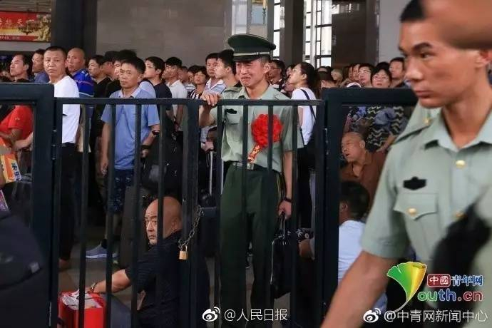 9月1日,北京火车站,一位战士来和他的战友们送别。在候车室里,他笑着向战友们敬礼、挥手,当战友们即将踏入安检门的一刻,他的眼泪,就再也忍不住了……致敬老兵!(@中青网新闻中心 )