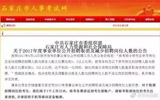 考生注意!2017年石家庄事业单位招聘86个岗位被取消
