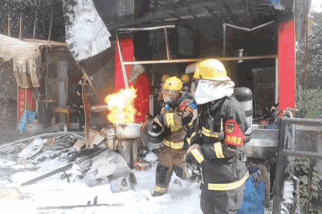 水枪掩护冲进去拎出煤气罐的战友……