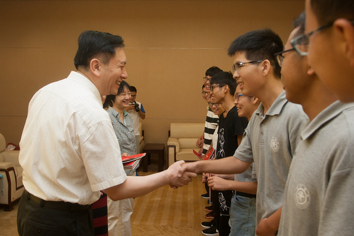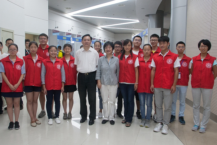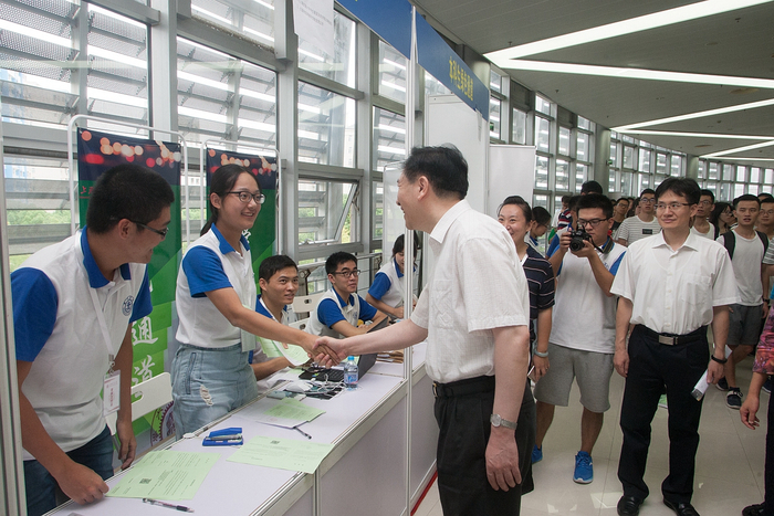 校党委书记姜斯宪,校长、党委副书记林忠钦,党委常委、副校长张安胜,党委常委、副校长徐学敏等校领导来到报到地点霍英东体育中心,欢迎新生来到交大。校领导亲切慰问新生代表,鼓励同学们志存高远,成为对社会有贡献的人。校领导一行还走访了各院系的报到点、学生宿舍楼栋、东川路轻轨站接站点等,亲切慰问新生、家长、工作人员和学生志愿者。