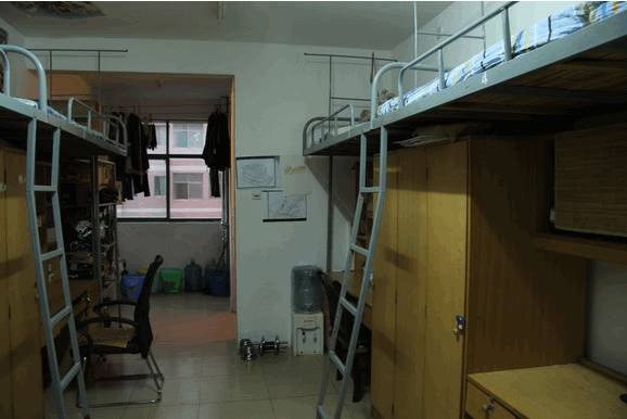 宿舍有四人间,五人间,六人间(每栋宿舍六楼),大部分为五人间。